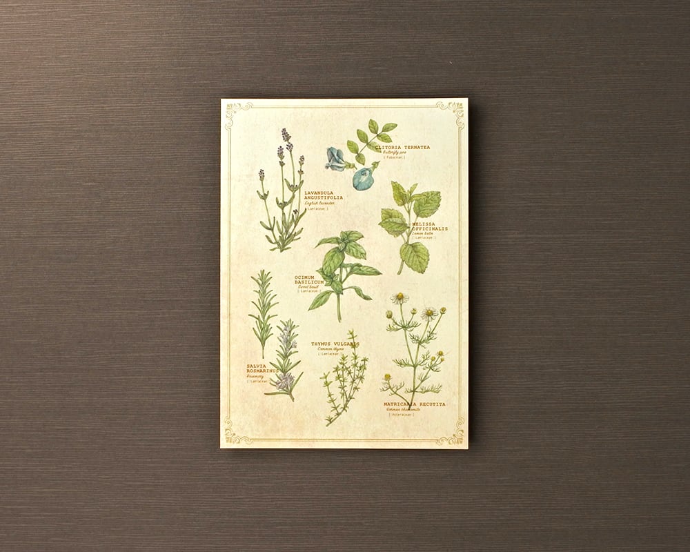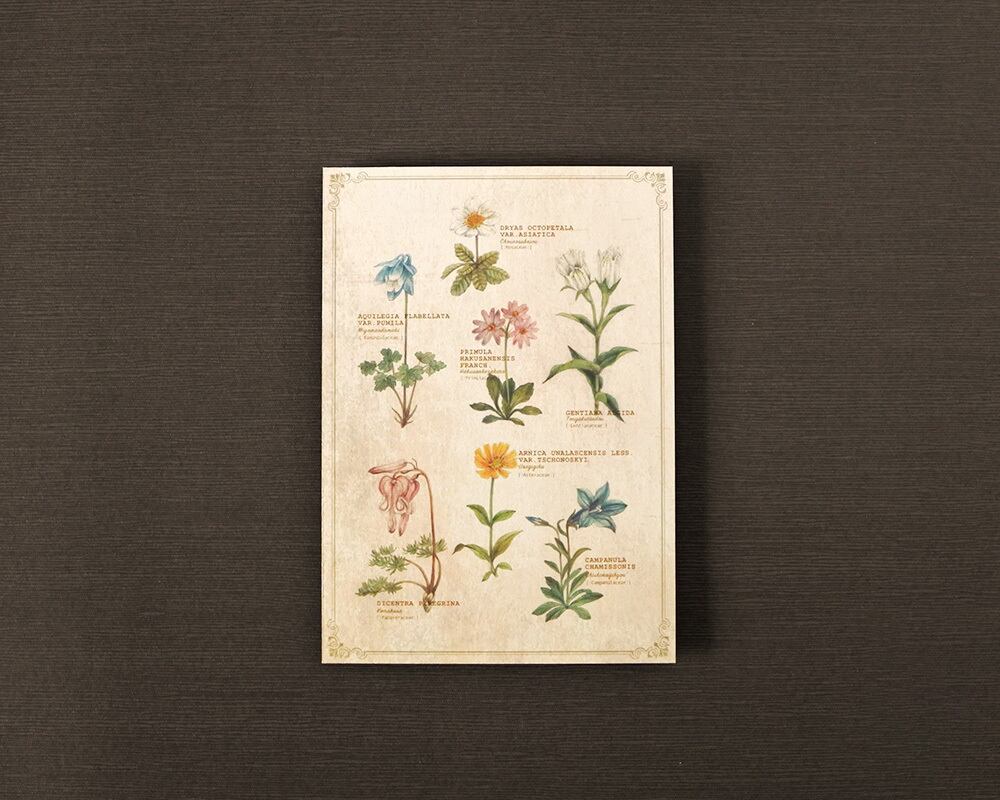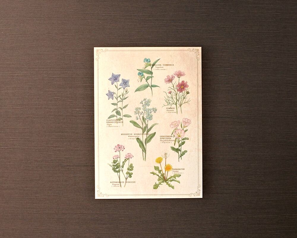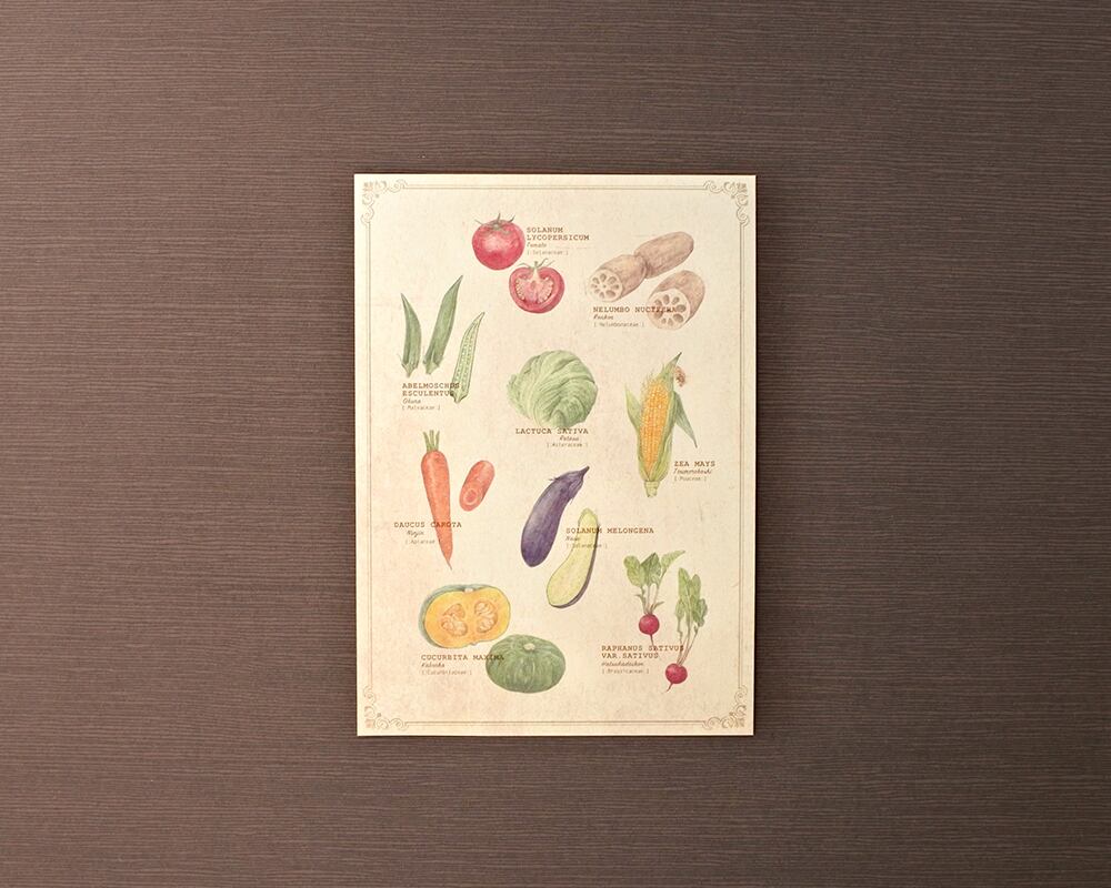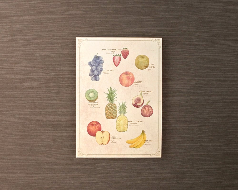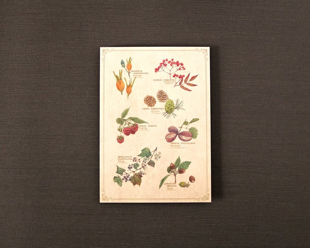 丁寧に描いた優しいタッチの絵柄に学名や科目などを添え、図鑑のような雰囲気を楽しめるデザインに仕上げています。