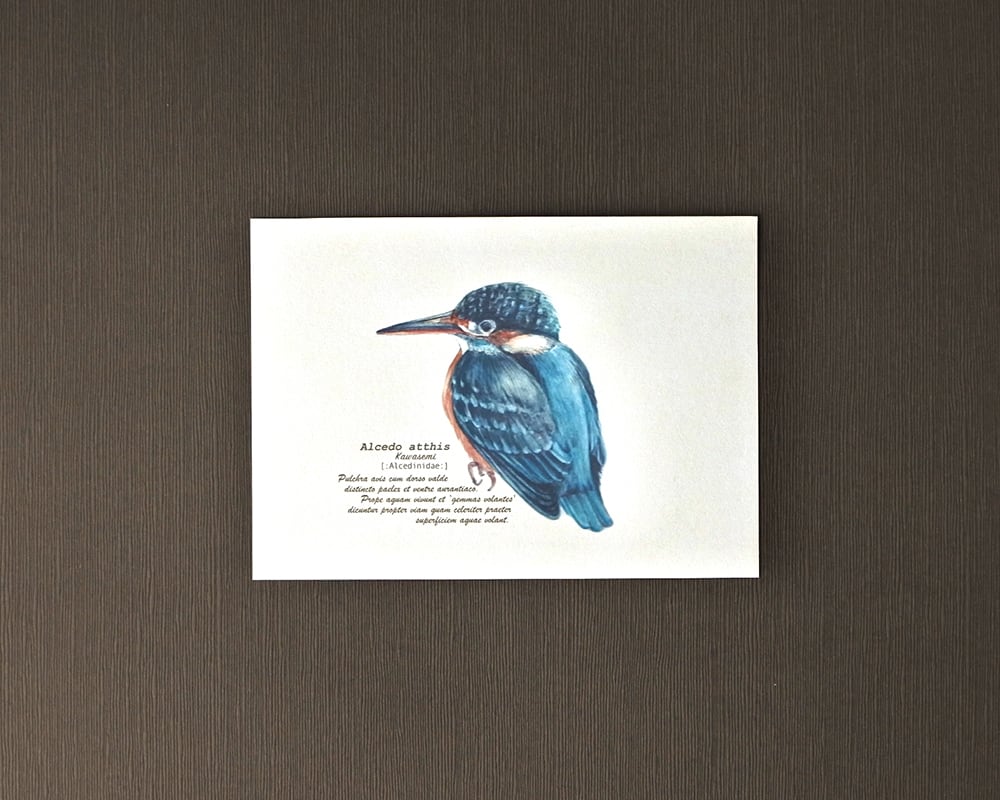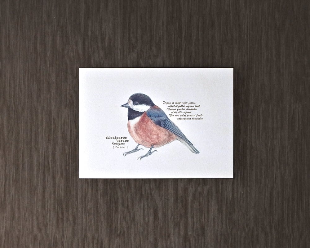 ヤマガラやカワセミなど野鳥たち5種類をモチーフにした5枚入りのポストカードです。