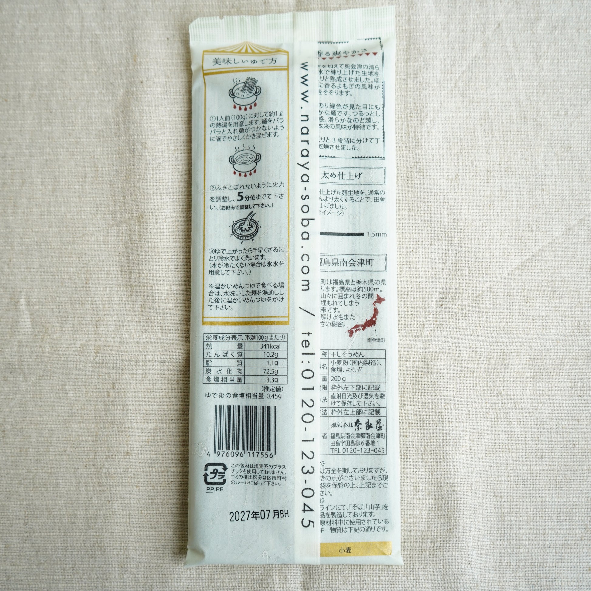 小麦粉と天然のよもぎを原料に奥会津の清らかな水を豊富に使用した麺生地を熟成し、ちょっと太めに仕上げました。
